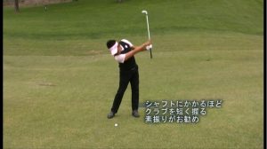 今どきダウンブロー指南 コース対応編 第1回 体の開きを阻止せよ!|シャフトにかかるほど「クラブを短く握って素振り」がおすすめ