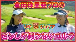 プロテスト トップ合格の和製ジュリアロバーツ・倉田珠里亜プロと楽しくラウンド対決する井上莉花ちゃん【オーク・ヒルズカントリークラブ②】